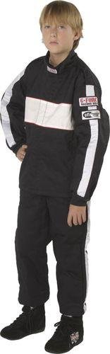 G-Force 4380XXLBK GF 505 Black XX-Large Triple Layer Racing Suit?This is G-Force's most popular suit available in an SFI-5 rating. G-Force goes above and beyond what you've come to expect from an entry-level multi-layer suit. This suit comes with standard epaulets, belt with loops, matching nomex cuffs, arm and leg stripes, and a large chest billboard with contrasting piping. The pyrovatex outer layer of this suit is available in attractive red, black, or blue. All with white stripes across the chest and down the arms and legs. All seams are safety stitched to help limit seam failure. The interior of the 505 suit is lined with the world renowned coolquilt liner. Dry = cool and this liner keeps you dry. The built in abzorb-a-line draws the moisture from the body and keeps the driver's body temperature down. Never before, has your average weekend racer been able to so easily afford a suit with a TPP near 30. The days of a racer pinching pennies on his driver suits are over. This suit is available in a 1 or 2 piece (jacket and pants).
