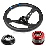NRG-SRK-160H+016R-BK+200RD, NRG Innovations 13.78" 350mm 3" Deep Dish Style Black Leather Blue Center Marking Racing Steering Wheel Combo with 6 Hole Short Hub Adapter with Gen 2.0 Red Quick Release Kit SRK-160H